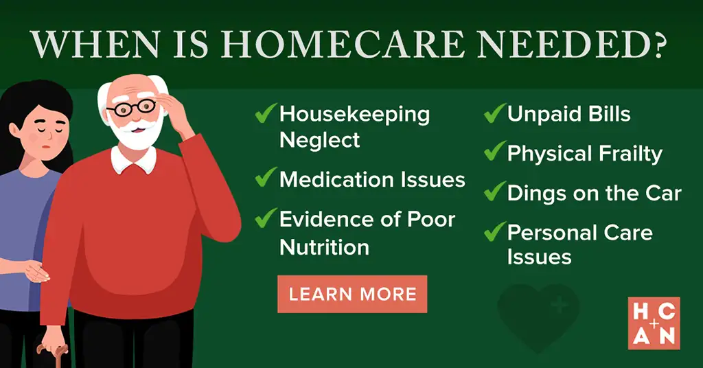 Have the conversation as early as possible. Don’t wait for a health scare, car accident or other crisis to force the discussion because, at that point, your options may be limited. Knowing the signs of when you loved one may need home care is important